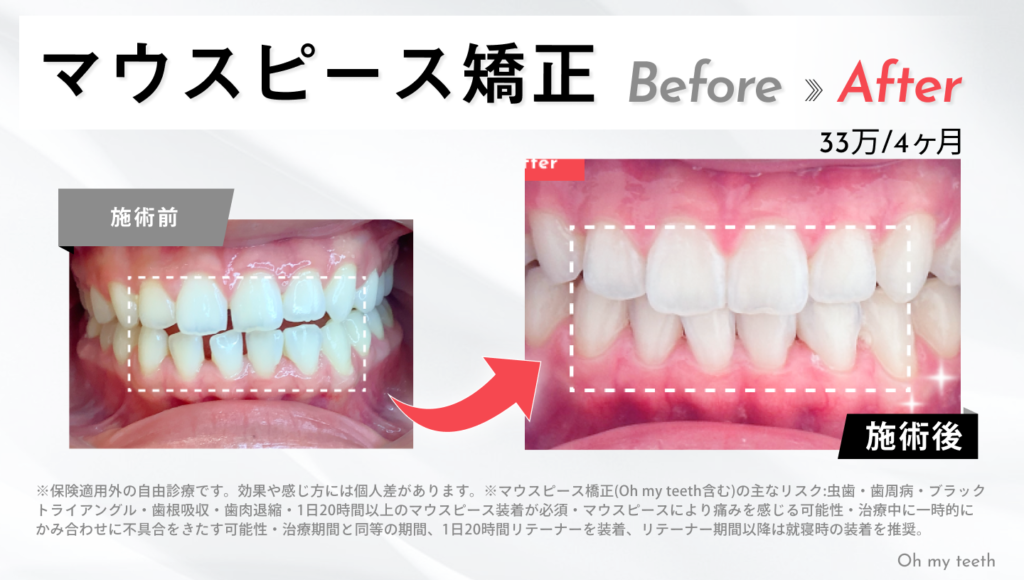 ここからは、Oh my teeth(マウスピース矯正)を使って実際に治療したケースを交えながら、「前歯だけで対応できる可能性が高い症例」と「前歯だけでは対応が難しいケース」を整理していきます。